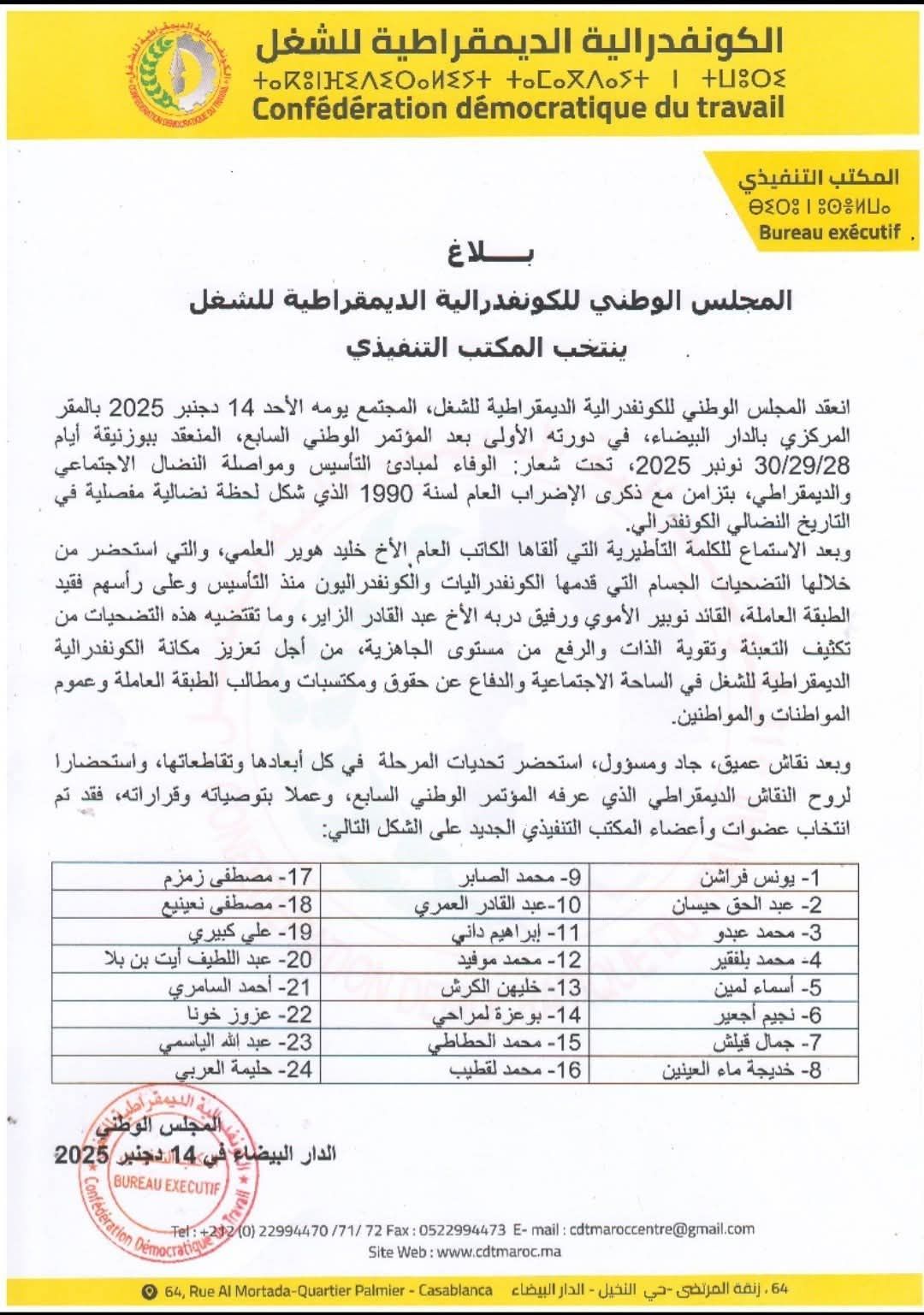 بيانات و بلاغات بلاغ المجلس الوطني للكونفدرالية الديمقراطية للشغل بتاريخ 14 دجنبر2025 ديسمبر 14, 20250 أقل من دقيقة شاركها فيسبوك تويتر واتساب مشاركة عبر البريد طباعة ديسمبر 14, 20250 أقل من دقيقة شاركها فيسبوك تويتر واتساب مشاركة عبر البريد طباعة شاركها فيسبوك تويتر واتساب تيلقرام مشاركة عبر البريد طباعة