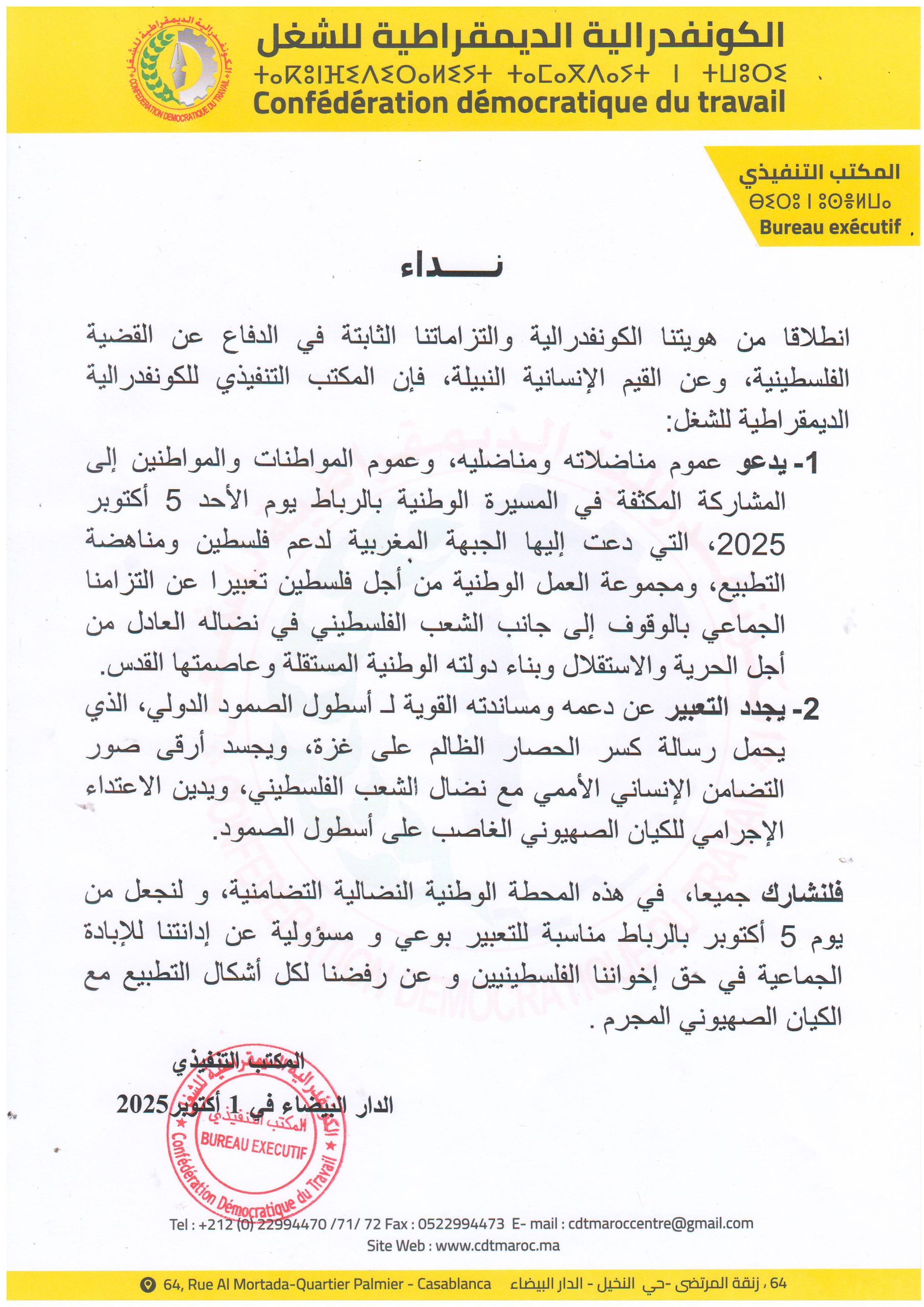 نداء الكونفدرالية الديمقراطية للشغل للمشاركة في مسيرة الرباط يوم5 أكتوبر2025